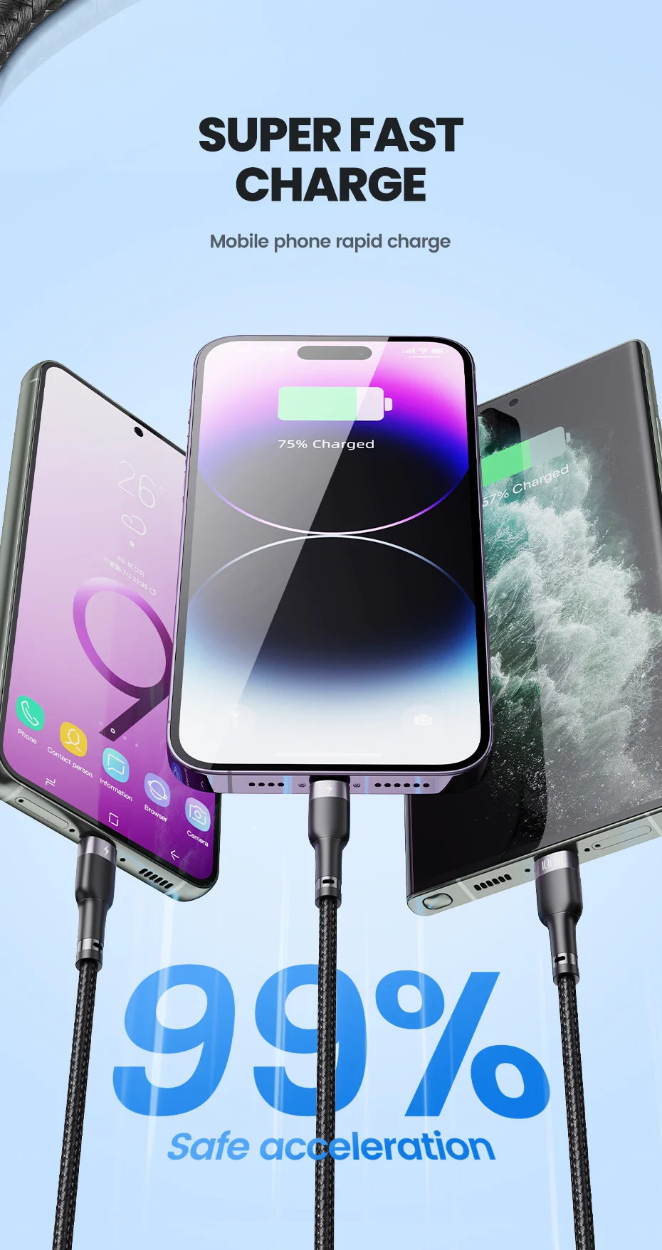 Feature 1: 3 in 1 USB To Micro USB Type C Lightning/3 in 1 USB Cable To Micro Type C Lightning